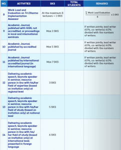 6. Each Lecturer is expected to perform the University Tridharma with the distribution of maximum credit/semester equivalence for each component as follows: